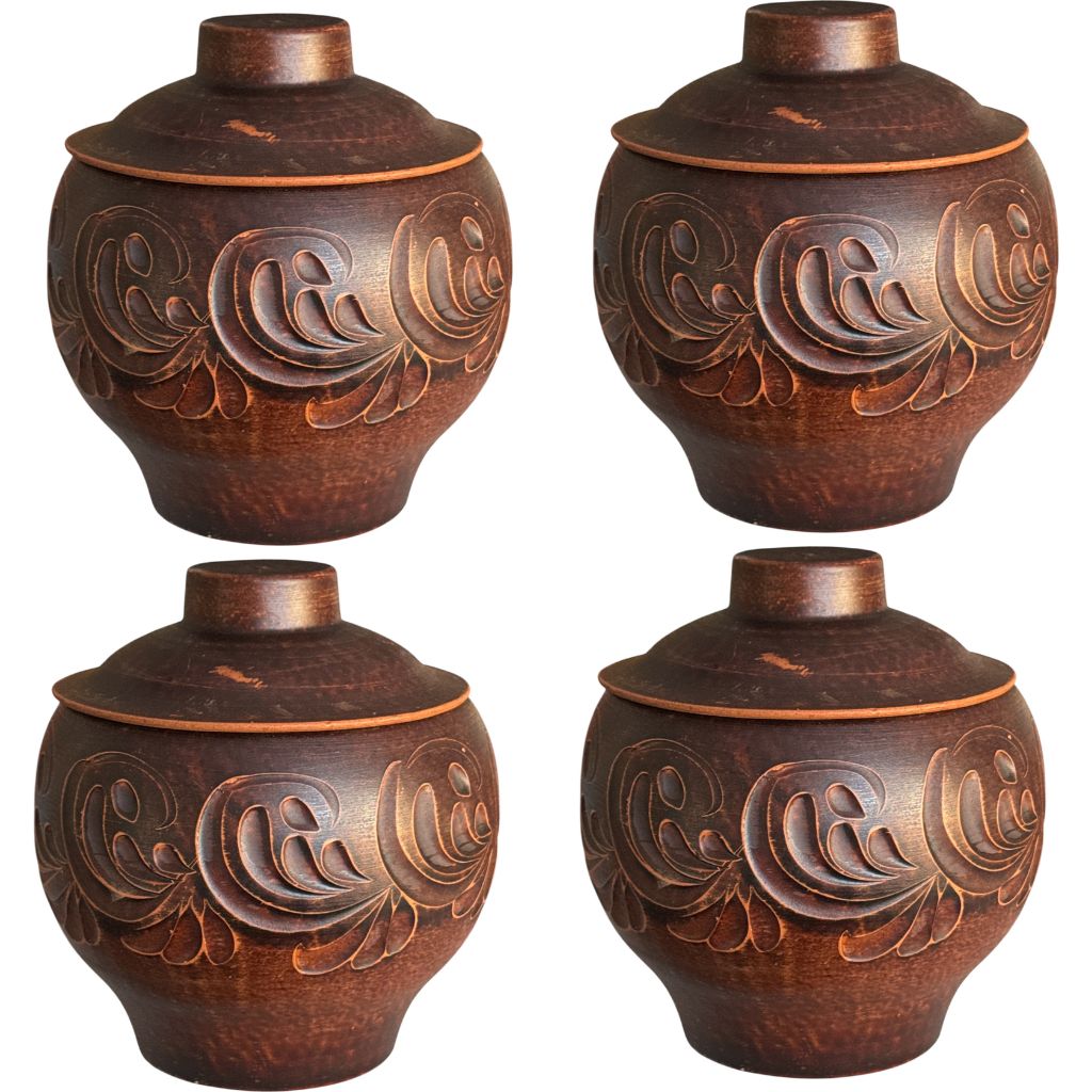 Ein schöner Tontopf zum Braten und Backen im Ofen und Ofen kann als Zuckerdose verwendet oder mit Honig gefüllt werden.