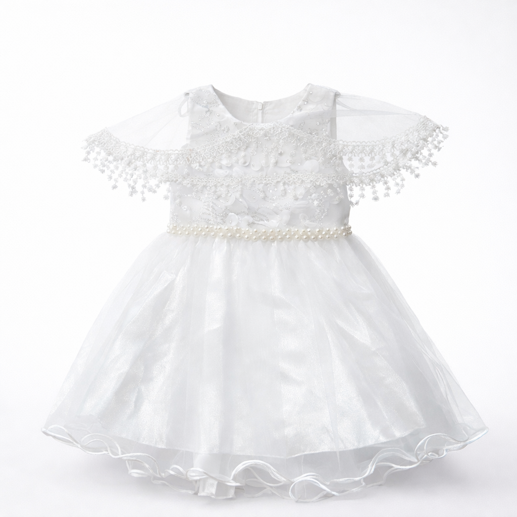 Kinder Festkleid Mädchen Weiß – Blumenmädchenkleid mit Tüllrock, Spitze & Perlen